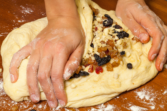Затем замешивалось рождественское тесто из яиц, сахара, масла и муки, добавлялась начинка. Такой кекс даже выпекался несколько часов при низкой температуре, после чего его покрывали глазурью, украшая орехами и марципаном. Пока кекс стоял и «дожидался» Рождества, он становился вкуснее, мягче и ароматнее, при этом выпечка долгое время не портилась из-за содержания в ней алкоголя.