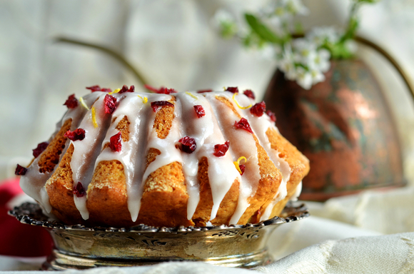 Очень красивым получается кекс с белковой глазурью, для которой один охлажденный белок хорошо взбивается миксером до пышной пены, а потом в него добавляют 0,5–1 стакан сахарной пудры, продолжая взбивать. Когда глазурь загустеет, влейте в нее 1 ч. л. лимонного сока и взбивайте еще полминуты. Если вы покроете нежной белковой глазурью слой джема и сразу же украсите кекс присыпкой для тортов, получится оригинально и невероятно вкусно.
