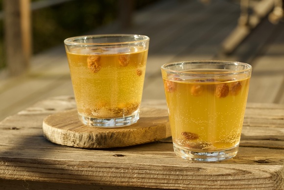 Чтобы спровоцировать процесс брожения, мы добавили к меду изюм. Но можно взять и свежие ягоды, например вишню, смородину, малину, чернику. Важно! И изюм, и ягоды должны быть немытыми, ведь на их поверхности находятся так называемые «дикие дрожжи», которые помогут напитку забродить.