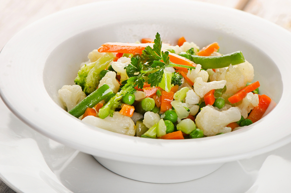 Подготовьте разобранную на соцветия цветную капусту или брокколи, нарезанный кубиками кабачок, кольца болгарского перца и лука. При желании сюда можно добавить любые овощи — тыкву, картофель, морковь. Пока овощи варятся в пароварке, приготовьте легкий соус из стакана нежирного йогурта, 2 ст. л. меда и 1 ч. л. горчицы. Добавьте в заправку любые свежие и сушеные травы, пряности, соль, перец и один измельченный зубчик чеснока. Полейте овощи перед подачей на стол и наслаждайтесь их аристократичным вкусом.