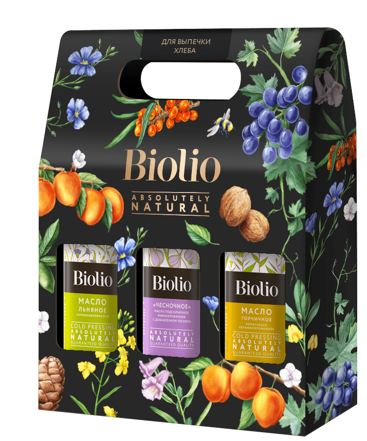 Набор состоит из тыквенного, горчичного и кунжутного масла. Продукцию производят методом холодного отжима, что позволяет сохранить витамины и минералы. Масла получаются не только вкусными, но и полезными. Горчичное масло улучшает кровообращение и пищеварение. Тыквенное масло содержит жирные кислоты, полезно для сердечно-сосудистой системы. Кунжутное масло питает кожу и укрепляет волосы.