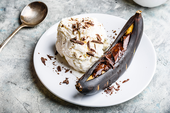 Кроме банановых «лодочек», запеките на гриле яблоки, они тоже будут очень хороши с холодным пломбиром.