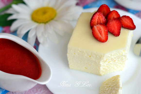 Двухслойная ванильная запеканка с ягодным соусом