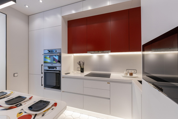 Эстетика. Грамотное проектирование позволяет визуально расширить пространство, сделать потолок выше. Верхние шкафы помогают замаскировать вентиляционные короба, газовые трубы и любые другие коммуникации, которые могли бы испортить впечатление от интерьера.