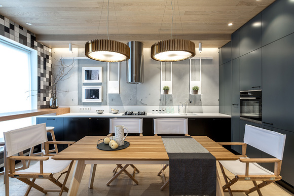 Последние несколько лет популярны два противоположных тренда в компоновке кухонь: с верхними секциями под потолок и кухни без верхних шкафов.