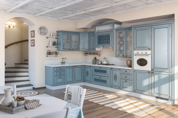 Мебель в стиле прованс обычно светлого цвета. Но помимо белого и бежевого можно выбрать оливковый, нежно-голубой, серый, а также древесные оттенки. Особый шарм придают кухням фасады с фрезеровкой и витражами, изящный декор, открытые полки, состаренная фурнитура. В коллекции Мастерской кухонной мебели «Едим Дома!» есть модели, которые отвечают всем этим требованиям, — это «Сицилия» и «Портофино». Их выразительные фасады со стеклом в рамках с перекрестиями, стильные ручки-кнопки и ракушки добавляют кухне свойственную провансу романтичность.