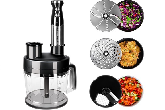 Устройство работает как компактный кухонный комбайн. Его можно использовать как блендер, миксер и измельчитель. А кроме того, с помощью нужной насадки вы быстро натрете картофель для драников без лишней влаги и крахмала, приготовите воздушное пюре без комочков и взобьете пышную молочную пену.
