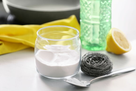Знакомый всем со школы бикарбонат натрия, или пищевая сода, входит в состав многих чистящих средств. Чаще всего ее используют при мытье посуды с сильными загрязнениями. Так как структура у соды кристаллическая, применять порошок для очистки кухонных шкафов и других поверхностей опасно — они могут поцарапаться. Чаще всего соду смешивают с другими ингредиентами для получения домашних чистящих средств.