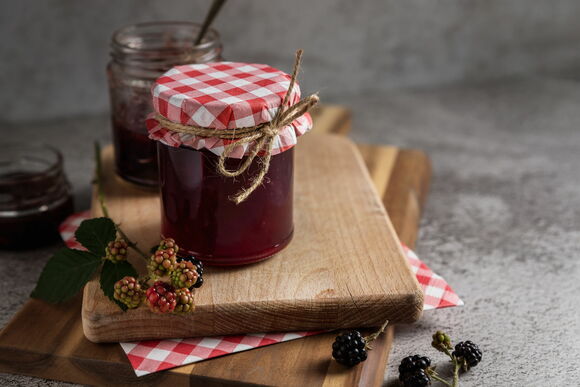 - Разлейте ягодную массу по банкам, закройте крышками. Ежевика содержит много натурального пектина, дополнительный загуститель не потребуется.