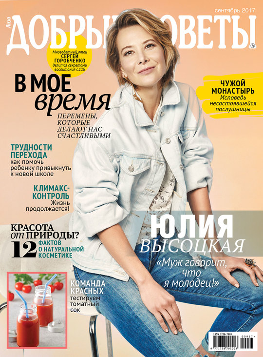 Друзья, ищите в продаже сентябрьский номер журнала «Лиза. Добрые советы» с Юлией Высоцкой! В интервью журналу Юлия рассказала, куда она движется на такой скорости, какие средства уместны в борьбе за молодость и о том, как она отдыхает. Не пропустите!