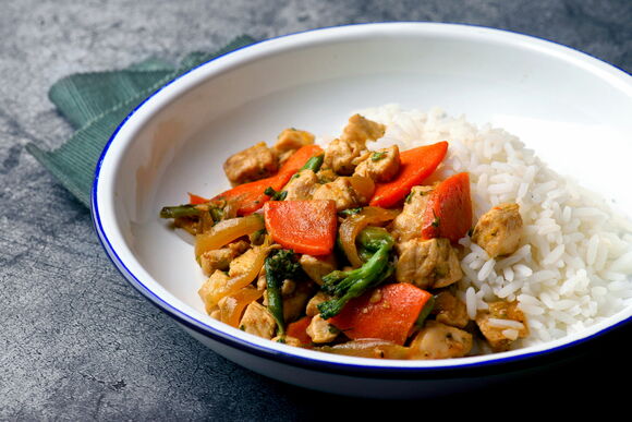 Популярная в Азии техника обжарки стир-фрай очень похожа на соте. Продукты, нарезанные кубиком или соломкой, быстро обжаривают в небольшом количестве масла на сильном огне, постоянно помешивая. Приготовить вкусное блюдо, например, в тайском или китайском стиле можно и в сотейнике.