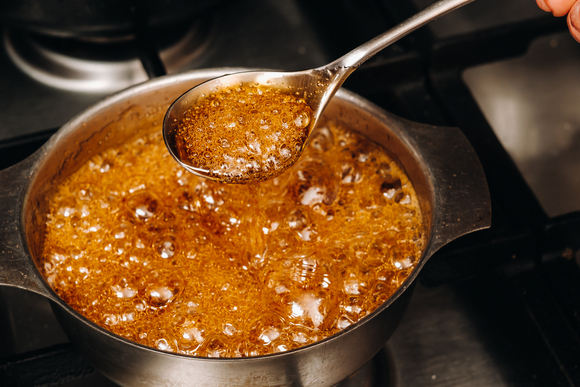 В процессе приготовления молочной помадки нужно постоянно помешивать массу, иначе она пристанет к стенкам посуды и подгорит. По этой причине варить ее следует на минимальном огне, а готовность проверять, капнув массу в стакан с холодной водой. Если капля превратилась в шарик — ириска готова. Выливать массу лучше на поверхность из стекла, металла или керамики, поскольку от дерева она с трудом отстает.
