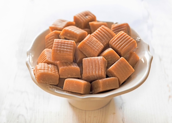 Сливочные конфеты ириски в домашних условиях готовятся не только из сливок, но и из молока, чтобы снизить калорийность готового блюда. Хотя сливочные ириски, конечно, вкуснее. Для приготовления конфет растворим 500 г сахара в 250 мл сливок или молока и поставим кастрюльку на средний огонь. Как обычно, массу придется помешивать в процессе варки, и вскоре она начнет густеть и темнеть. Как только молочная карамель приобретет цвет кофе с молоком, ее можно считать готовой. Снимаем ирис с огня, растираем со 100 г сливочного масла и ароматизируем несколькими каплями ванильного экстракта. Выкладываем ирис на смазанную маслом поверхность, разравниваем и даем застыть, потом красиво нарезаем и подаем к столу.