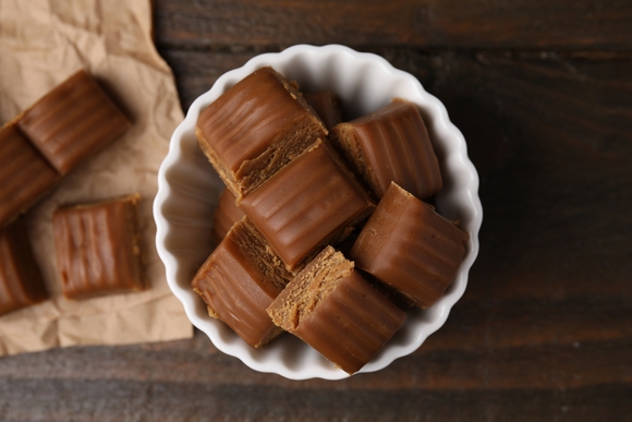 Эти нежнейшие конфеты тают во рту и не оставляют выбора сладкоежкам — их хочется есть бесконечно! Растапливаем на медленном огне 100 г сливочного масла, затем пассеруем в ней 40 г пшеничной муки до бежевого цвета. Вливаем в сковороду 300 г сгущенного молока и варим, помешивая, 10 минут. Далее добавляем в сковороду 200 мл теплого молока, тщательно перемешиваем и варим, пока масса не загустеет и не станет золотистой. Выкладываем помадку на ровную поверхность, даем остыть и вырезаем формочками красивые конфеты. Можно просто порезать пласт ножом или разломать руками.