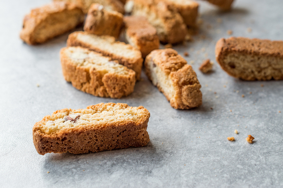 На выходе получается нечто вроде десертных сухарей. Однако текстура у бискотти благодаря особой технологии приготовления — более изысканная и рассыпчатая. Между прочим, бисквит получил свое название именно от бискотти. Ведь в его состав входят точно такие же ингредиенты — яйца, сахар и мука. Но из-за того, что бисквит выпекают лишь раз и не нарезают ломтиками, он получается более воздушным и нежным.