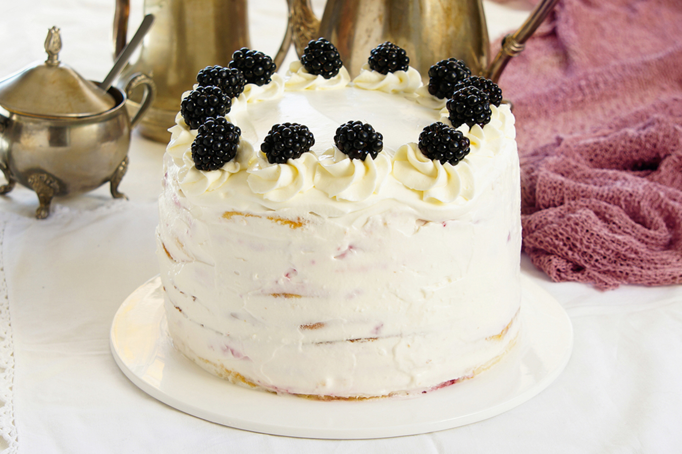 - Торт можно оставить просто белым или украсить его ягодами.
