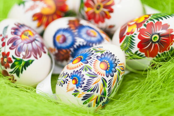Практически в любом магазине накануне Пасхи можно найти красивые термонаклейки и украсить ими яйца. Среди рисунков встречаются христианские сюжеты, национальные русские узоры (хохломская, гжельская, палехская роспись), растительные и геометрические орнаменты, словом, выбрать можно на любой вкус.