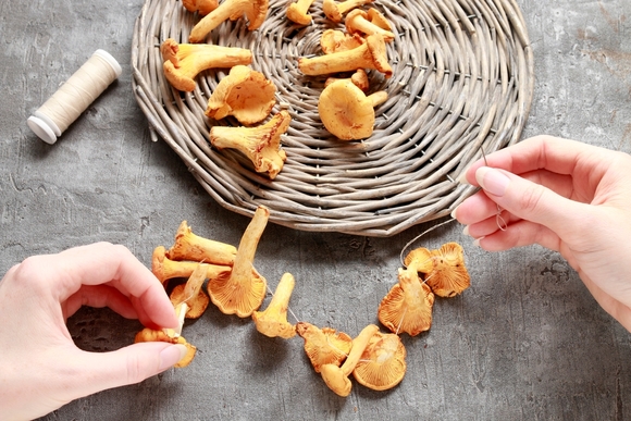 Самый бюджетный и долгий способ — сушка грибов на нитке. Так продукты сушили еще в Древней Руси. Но делали это на улице, из-за чего качество заготовки часто оказывалось неудачным.