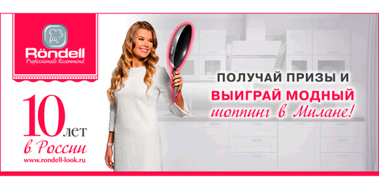 Röndell вот уже десять лет радует российских потребителей качественной и технологичной посудой, с которой так легко создавать любые кулинарные шедевры! В связи с круглой датой бренд запускает уникальную акцию, которая позволит поклонникам Röndell не только насладиться приготовлением блюд в любимой посуде, но и совершить шопинг в мировом центре моды — Милане.