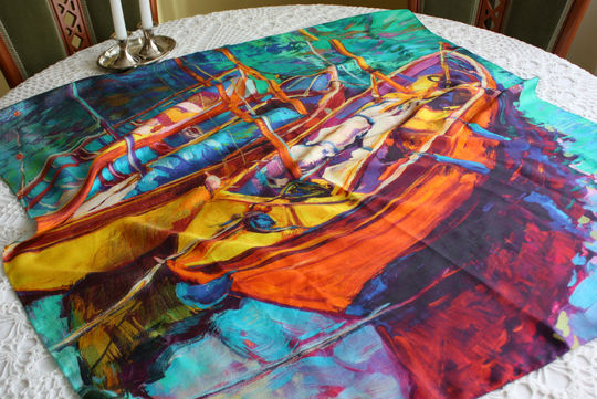 Платок, естественно, с рисунком на морскую тему. Яркий, приятный для кожи.