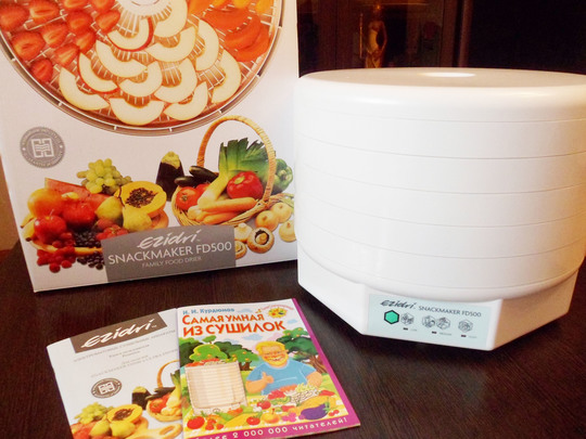 А это — «Снекмейкер-500» — новозеландский сушильный комбайн. В нем пять лотков для сушки фруктов и овощей. Функционально возможно увеличить количество лотков до 15 (!) и сушить сразу ведро фруктов, не увеличивая потребление электроэнергии. Сохнет такой объем на 1–2 часа дольше. И самое главное преимущество сушилки «Изидри» — равномерность высыхания всех лотков! Отпадает необходимость менять лотки местами при сушке!