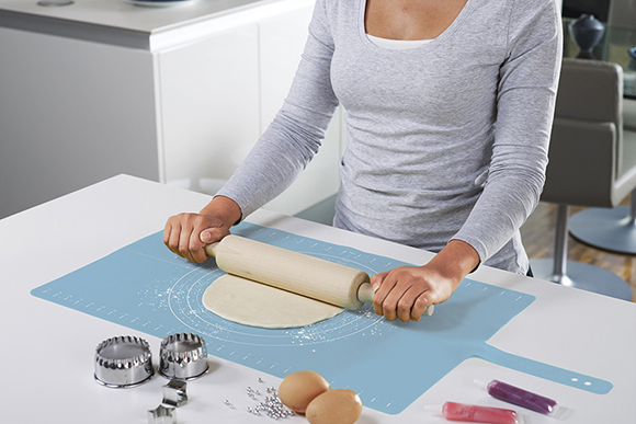 Ольга получает в подарок коврик для теста с мерными делениями Roll-up голубой и книгу для записи рецептов от Юлии Высоцкой.