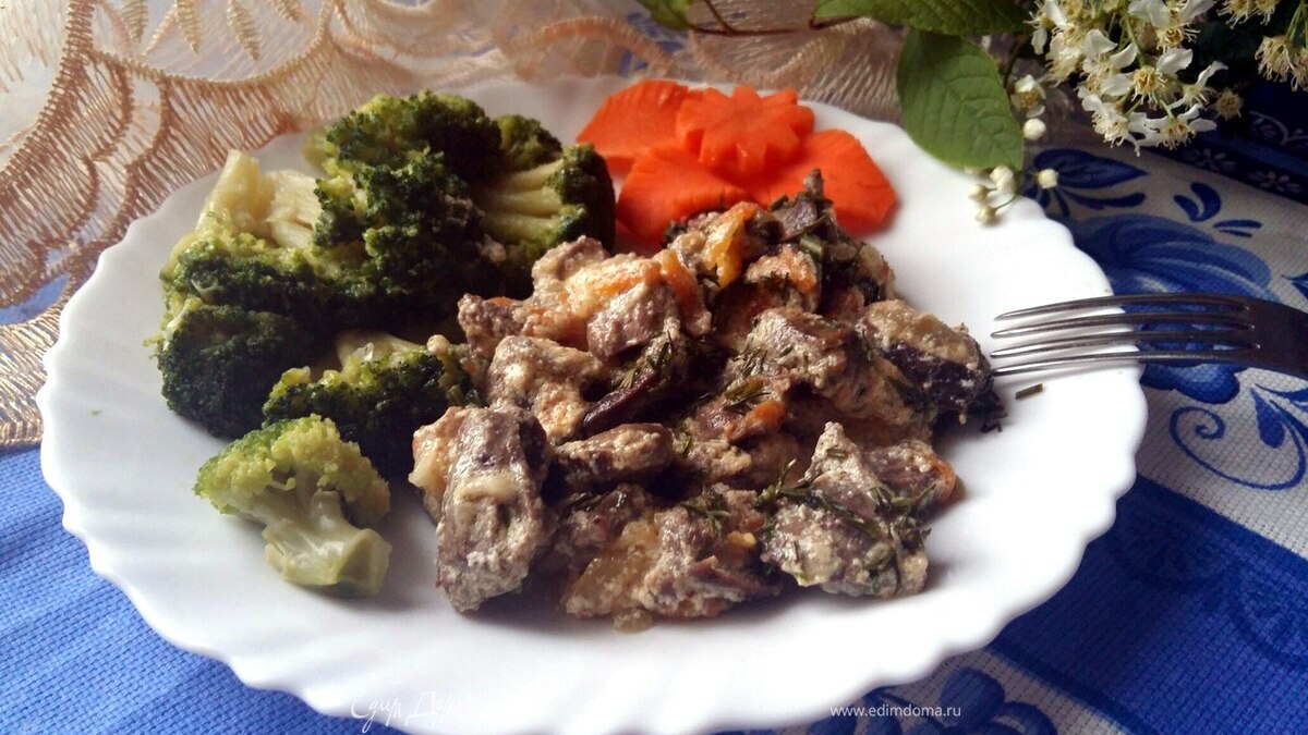 Куриные сердечки в сливочном соусе готовы. Соус очень вкусный, мои любят куриные сердечки с картофельным пюре, я же люблю на гарнир овощи. - Шаг 12