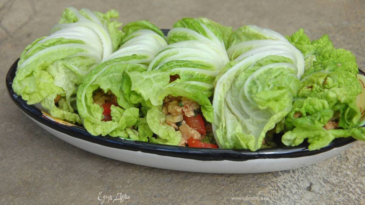 Вместо курицы подойдет филе индейки, свиная вырезка или телятина, любите более крупные кусочки мяса — порубите его ножом. Если фарш при обжарке получается суховатым, влейте немного куриного или овощного бульона. Китайскую капусту можно заменить подмосковным салатом, а базилик — мятой или кинзой, хороши здесь будут также кедровые орехи, кешью или арахис.
