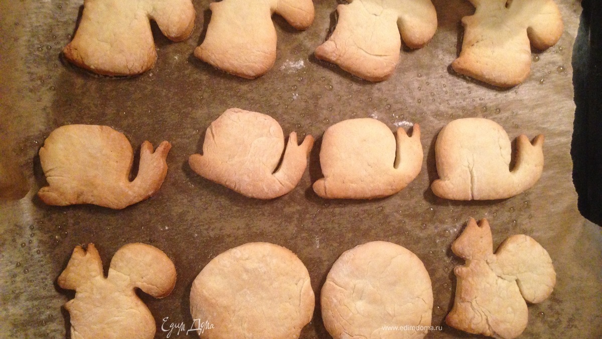 Раскатать тесто на присыпанной мукой поверхности, вырезать фигурки. Выложить на смазанную маслом пергаментную бумагу и запекать буквально минут 10 до слегка золотистого цвета, но не пересушите. Готово! Приятного вам чаепития!