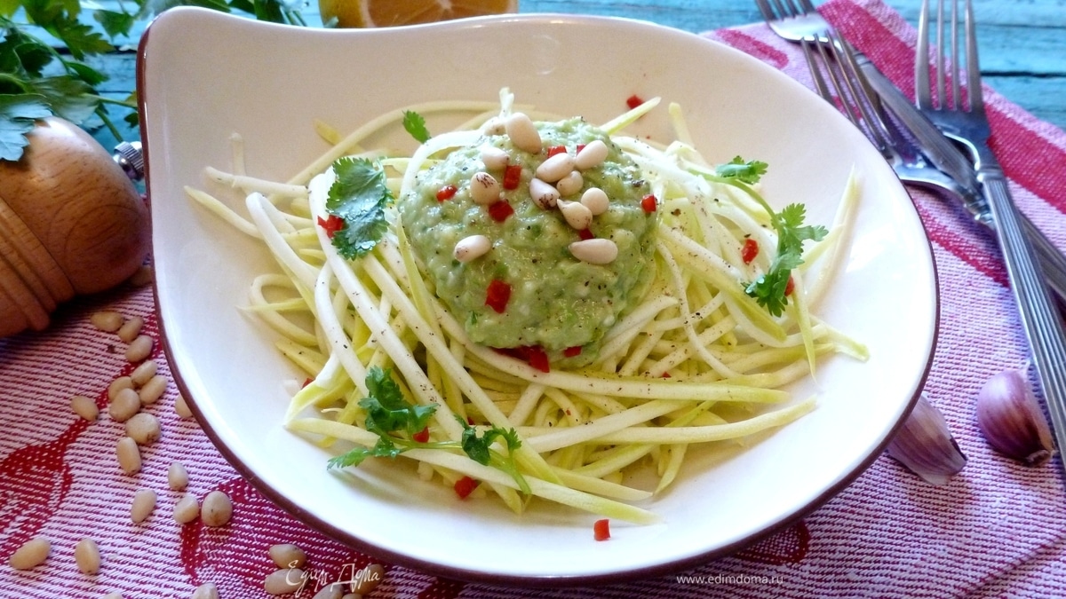 Спагетти из кабачка под соусом из авокадо