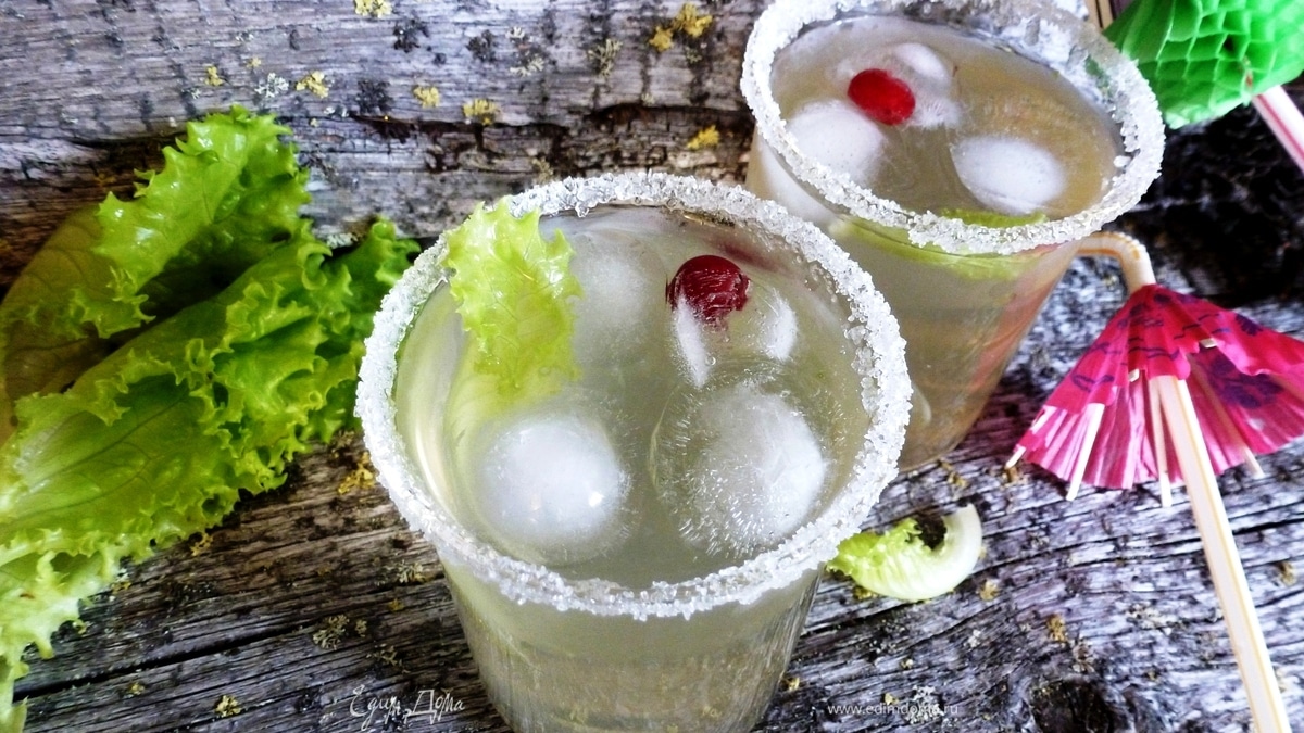 Края стакана обмажем лимонным соком и обмакнем в сахар. Напиток сразу же разливаем через ситечко по стаканам. Положим в каждый стакан по несколько кусочков льда. Угощайтесь!