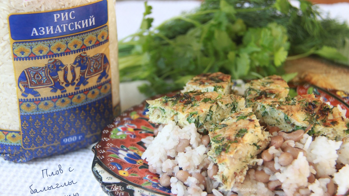 Плов по-азербайджански — блюдо из длиннозерного риса с фасолью «черный глаз» на сливочном масле. Балыглы кюкю — это, если так можно сказать, рыбный омлет с большим количеством зелени. Для аутентичности предпочтительнее готовить с кутумом горячего копчения (но достать такую рыбку тем, кто не живет на Каспии или нижней Волге, достаточно проблематично! Поэтому выход один — заменить на копченого сига или сазана). Для блюда я использовала рис «Азиатский» ТМ «Националь». Угощайтесь!