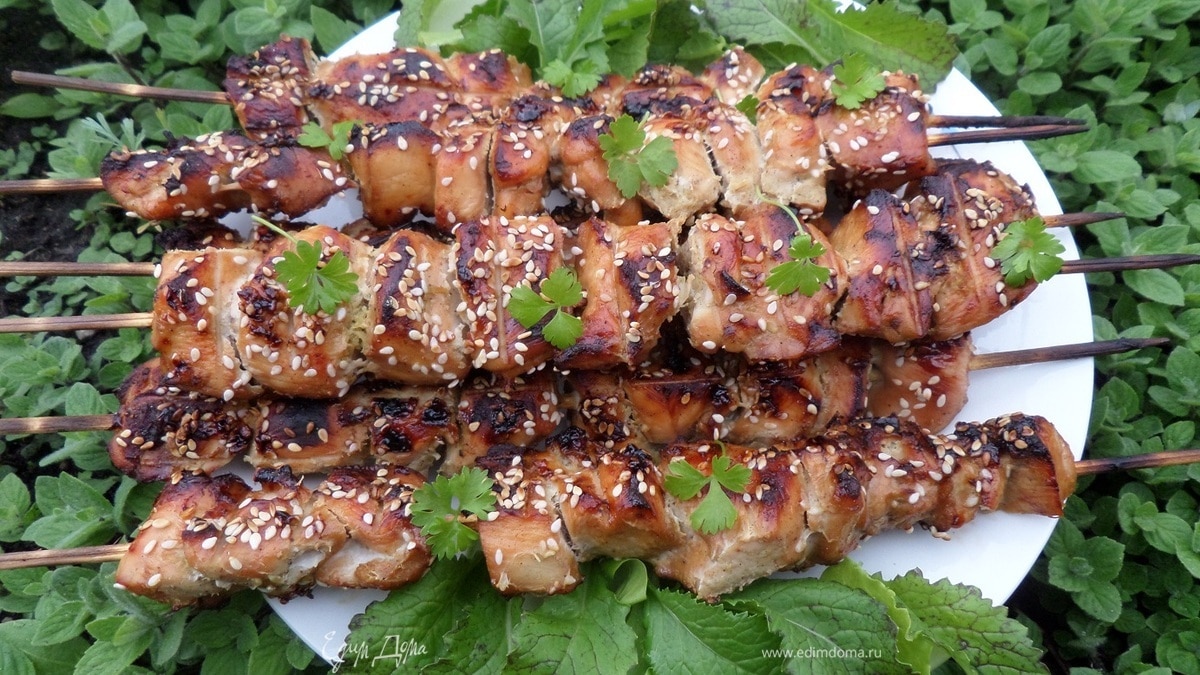 Вкусный, сочный, в меру острый и ароматный шашлычок из куриной грудки. Быстро, просто и вкусно!