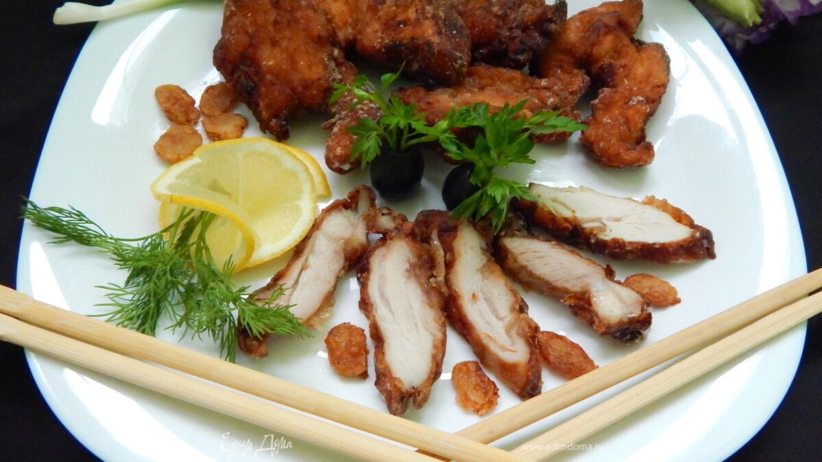 Карааге — это японский способ приготовления пищи. Кусочки курицы, морепродуктов маринуются в соусе, затем обваливаются в картофельном крахмале и после обжариваются в большом количестве масла. При жарке образуется тонкая хрустящая корочка. Мясо грудки получается более постным, а филе с голени и бедер — посочнее. Моя мечта все та же — стильный японский шеф-нож ТМ Tojiro HATAMOTO с зеленой рукояткой, который будет отлично гармонировать с моей кухней и станет ее украшением))