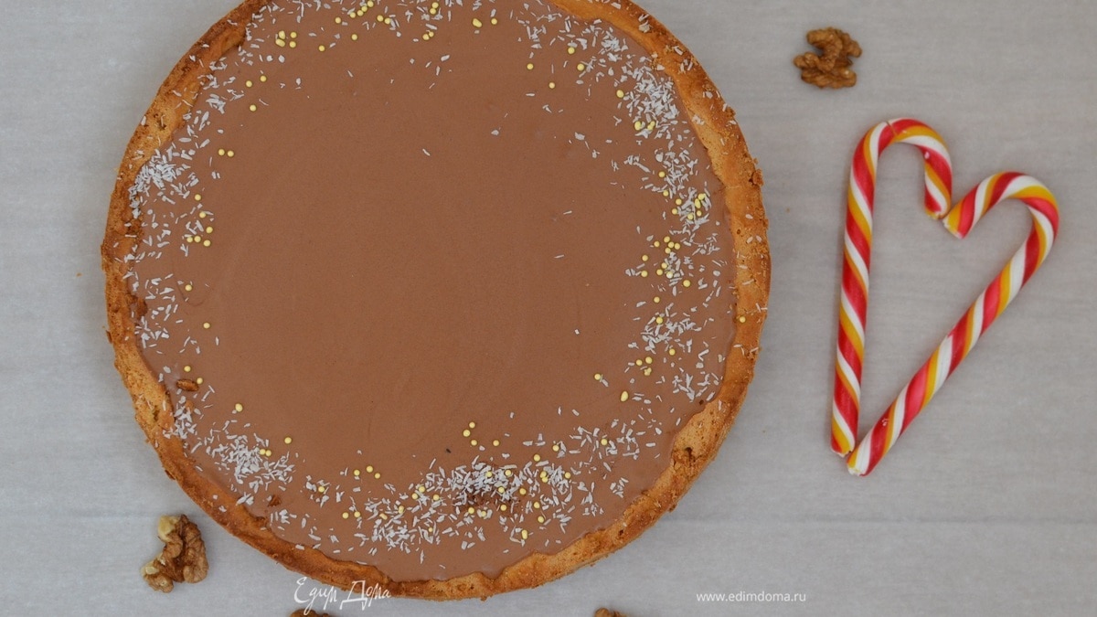Сверху вылить шоколадный мусс и немного потрясти для гладкости поверхности. Убрать в холодильник на ночь, чтобы тарт застыл. - Шаг 16