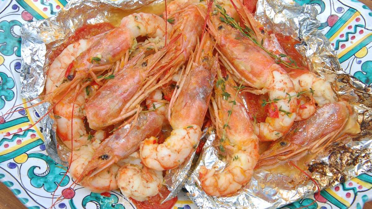 Готовить креветки в закрытом кармане на разогретом гриле.