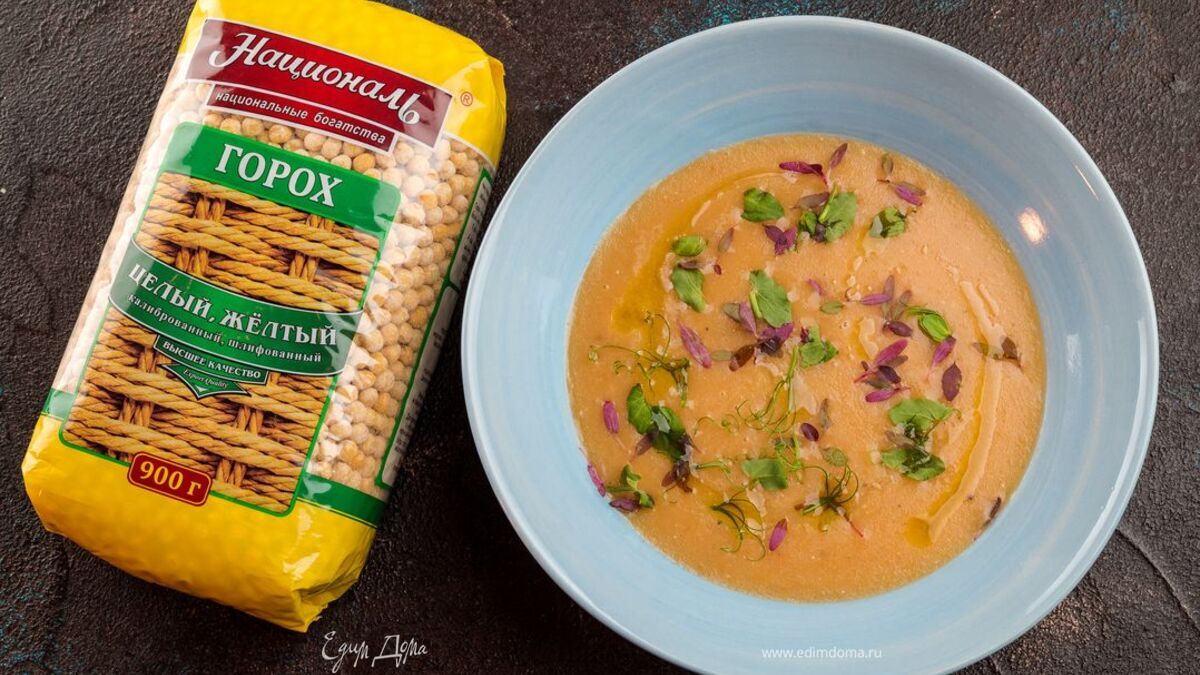 Горох ТМ «Националь» предварительно замочите в воде. Далее отварите до мягкости с нарезанной морковью и луковицей. - Шаг 3