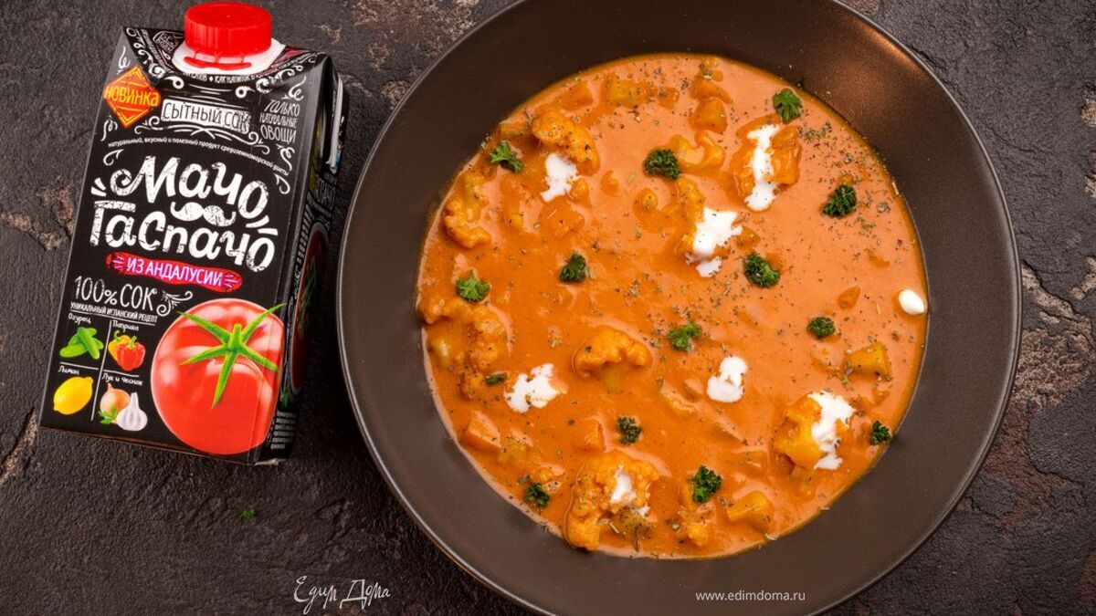 Добавьте сок «МачоГаспачо из Андалусии» и томите овощи под крышкой до мягкости сельдерея 10 минут. - Шаг 5