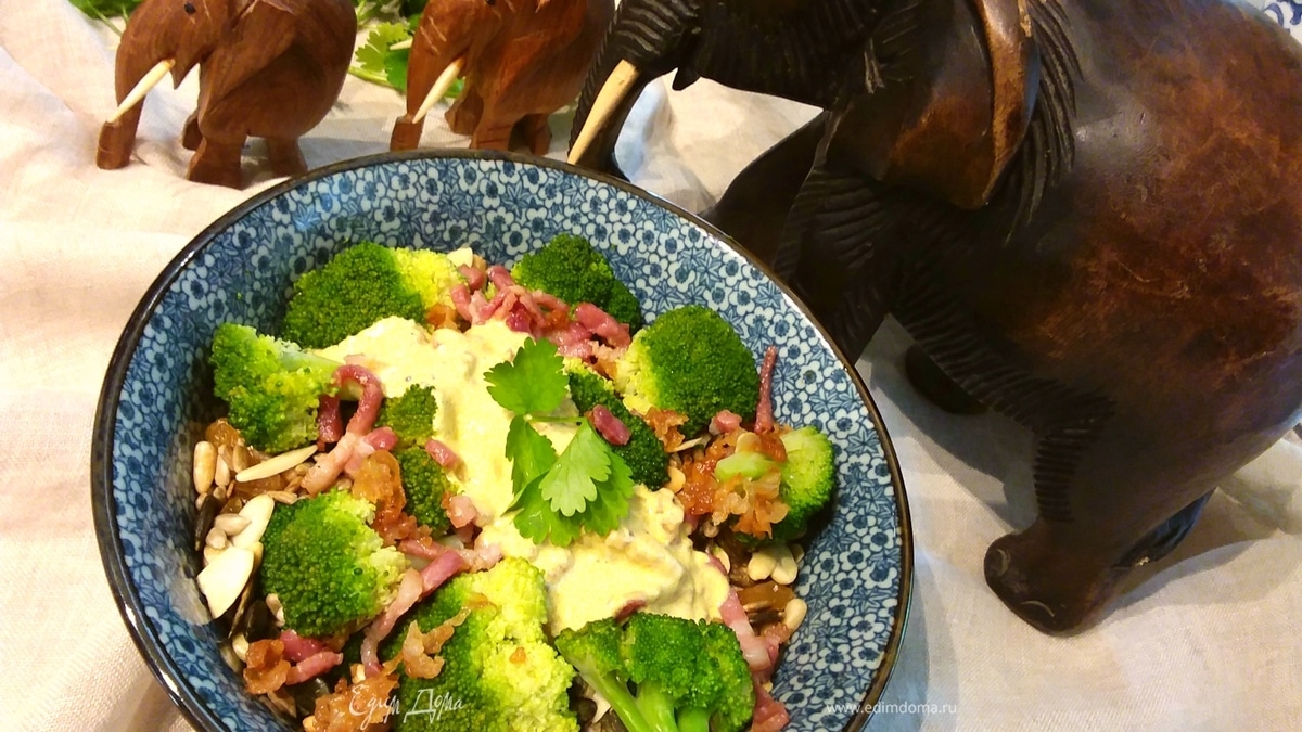 Честное слово, но я сама не ожидала, что салат окажется таким вкусным. Кроме того он крайне полезен. Если вы вегетарианец, то можете упустить в блюде шкварки из бекона. Но если нет — не лишайте себя удовольствия насладиться салатом в полной мере. Нежная, сочная брокколи, хрусткая смесь семечек и орешков, поджаренный до золотистого цвета бекон и взрывающийся сладостью обласканный южным солнцем изюм. В довершении всего очень интересный с тонкой восточной ноткой соус. Одной почтенной даме сервировали этот салат во время сафари по Африке. По ее словам в оригинальной версии брокколи употребляли в сыром виде. Я еще не научилась есть брокколи сырой, но постаралась отварить ее минимальное количество времени. Удивите себя!