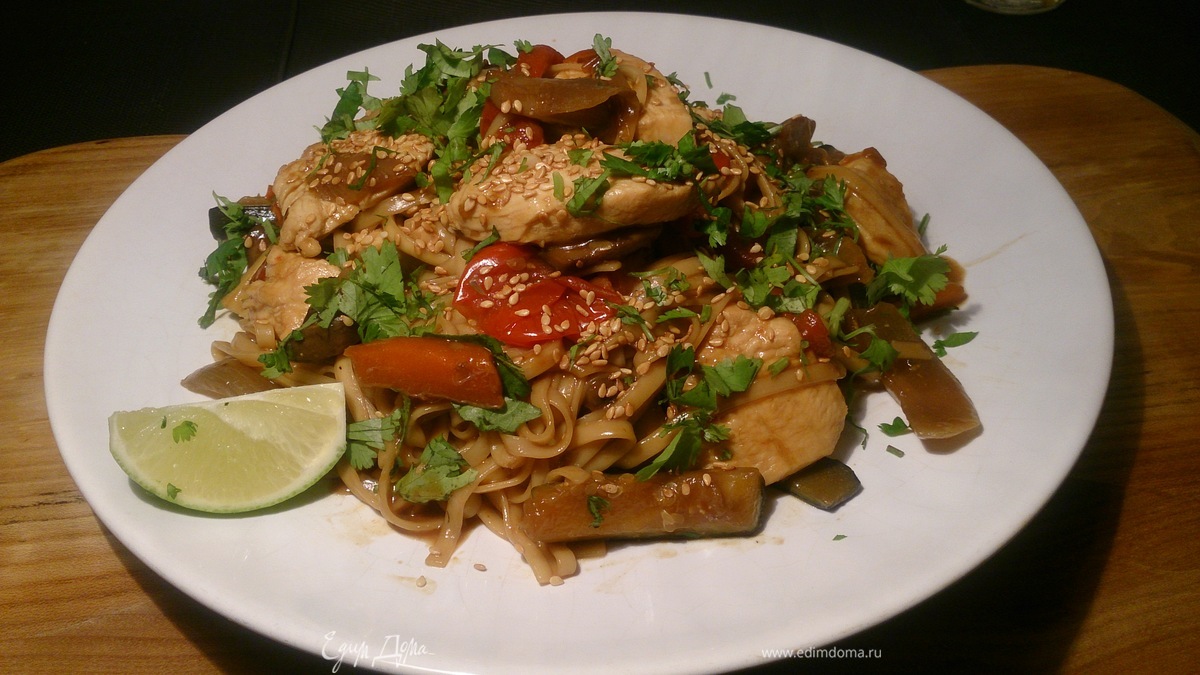 Подаем посыпав рубленной кинзой, жареным кунжутом и обязательно сбрызнуть соком лайма. Получилось ну правда очень вкусно! Остро, пряно, сытно (как раз и по погоде, для нашего июля-октября, то что надо) Всем приятного аппетита!