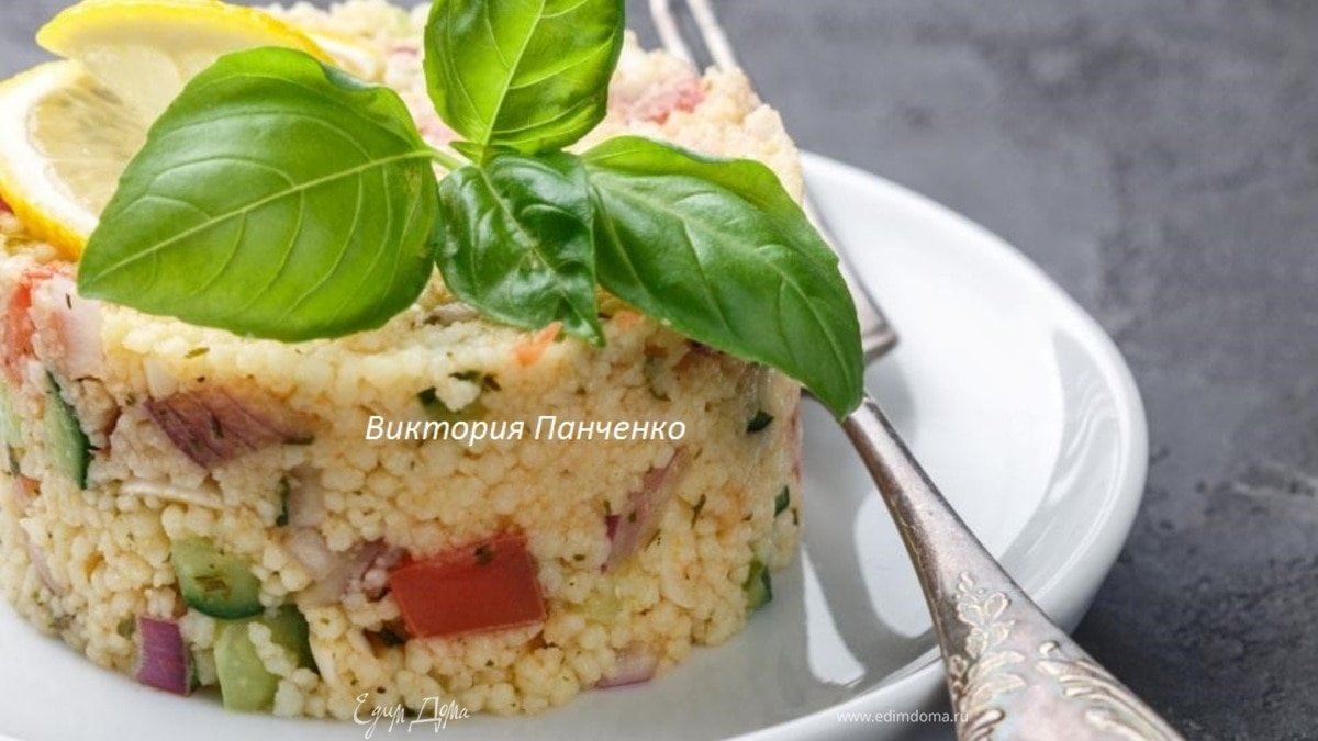 - Шаг 3Кускус слегка охладить, соединить с овощами, добавить оставшееся оливковое масло и лимонный сок, при необходимости добавить соль по вкусу и свежемолотый перец.