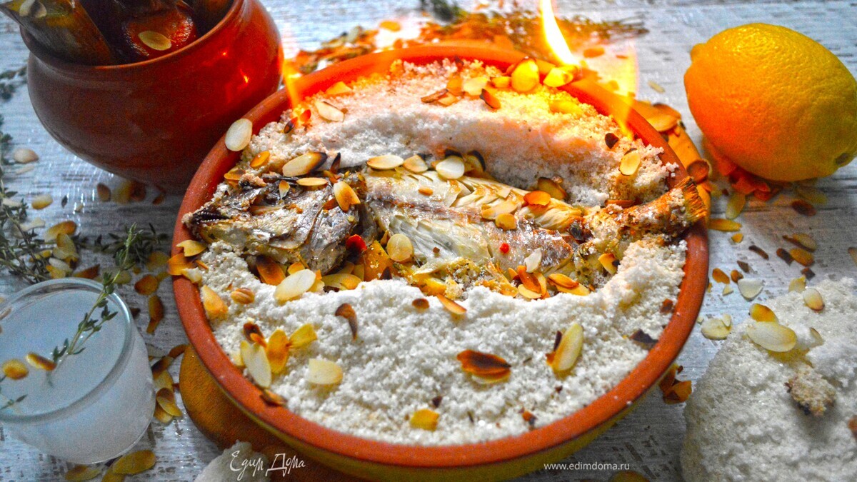 Рыба в соли - рецепт известный. Только подача эффектная.