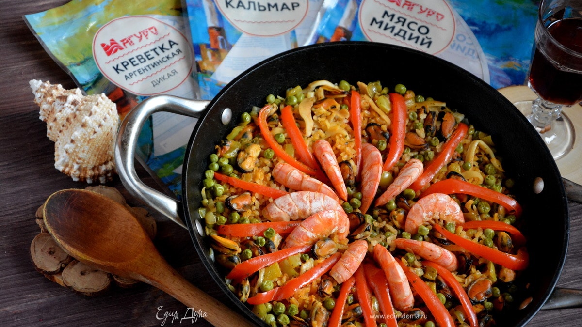 Дать паэлье настояться 10 минут под крышкой. Рекомендую подавать блюдо с красным молодым аргентинским вином. Приятного аппетита!