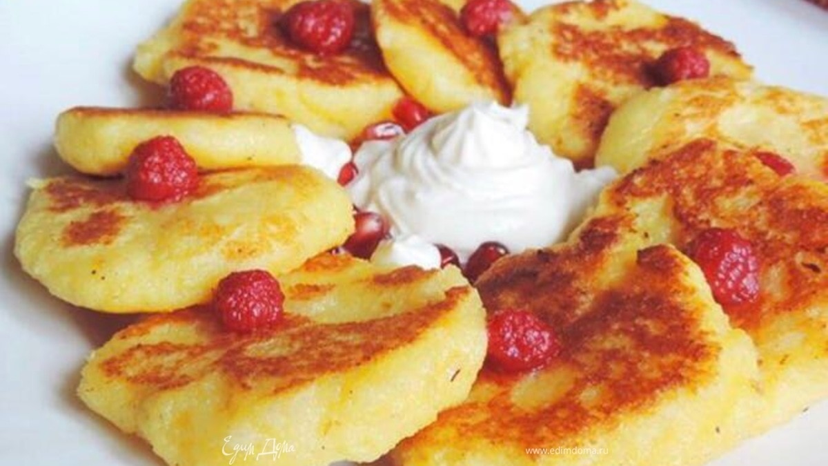 - Шаг 5Готовые сырники можно подавать с вареньем, ягодами и сметаной. Приятного аппетита!!!