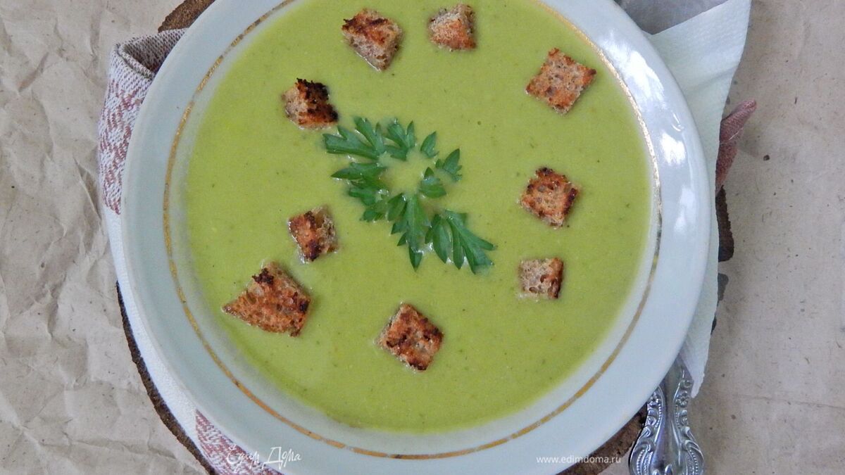 Хочу предложить вам очень вкусный и нежный крем-суп со свежим зеленым горошком (или замороженным). Суп можно готовить на мясном, овощном бульоне или просто на воде. Для сухариков хлеб подойдет как черный, так и белый.