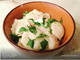 Отвариваем пельмени в рыбном бульоне (допустим рыбный кубик) или на пару (на Руси паровая кухня была популярна не менее духовой). Украшаем глазки черным перцем и подаем к столу! Спасибо, Магуро, за чудесный, мною обожаемый продукт, который не только вкусен, но и практичен!