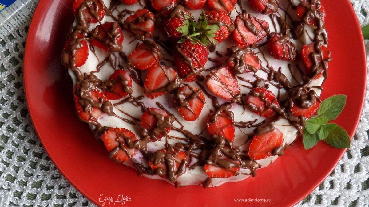Рисово-творожный торт с клубникой