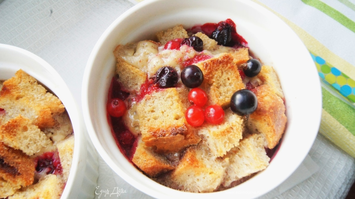 Духовку разогреть до 200°С. В рамекины разложить кусочки масляного хлеба и ягоды. Сверху еще немного хлеба. - Шаг 6