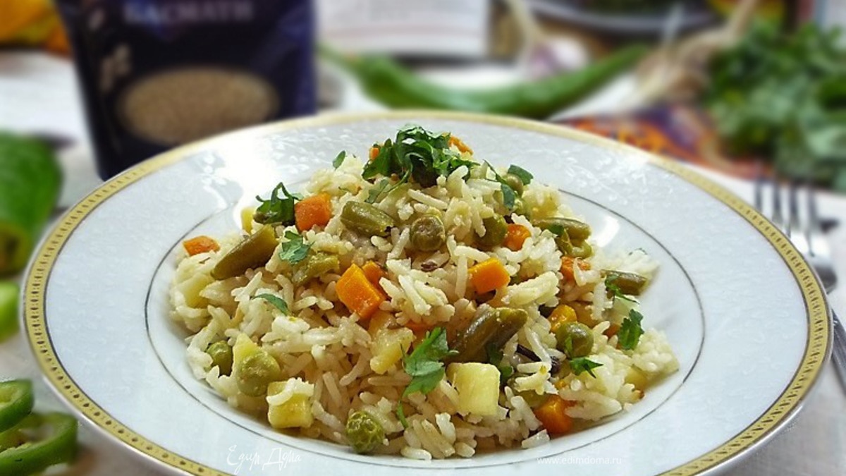 Изумительно вкусное блюдо индийской кухни — вегетарианский пулао (плов), обладающий поистине волшебным ароматом и пряным вкусом, созданным разнообразными специями и пряностями: гвоздикой, кумином, кардамоном, корицей, и не забудьте про главную индийскую приправу — шафран!