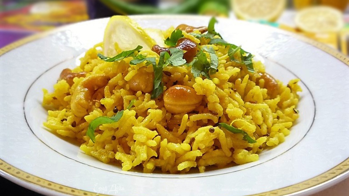 Очередное вкуснейшее блюдо индийской кухни — яркий, ароматный рассыпчатый рис со специями и орешками кешью. Сочный лимон придает рису приятную кислинку! Блюдо сбалансированно по своему содержанию углеводов, растительного белка и полезных жиров, поэтому является идеальным вариантом для постного стола.